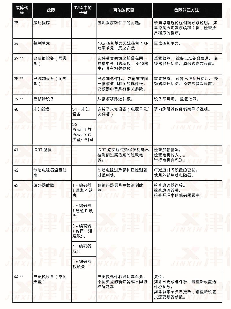 四、偉肯NX變頻器故障代碼FT35,36,37,38,39,40,41,42,43,44