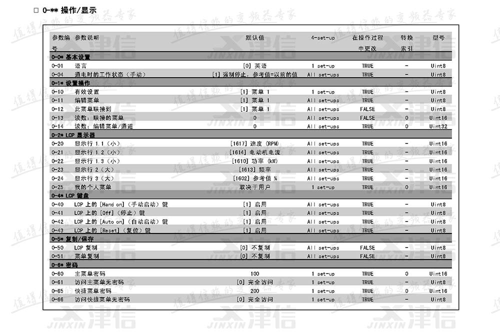0,操作和顯示參數設置說明