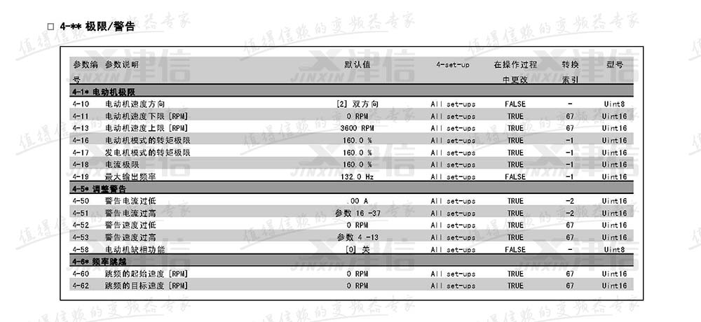 4、FC302變頻器極限和警告參數設置說明