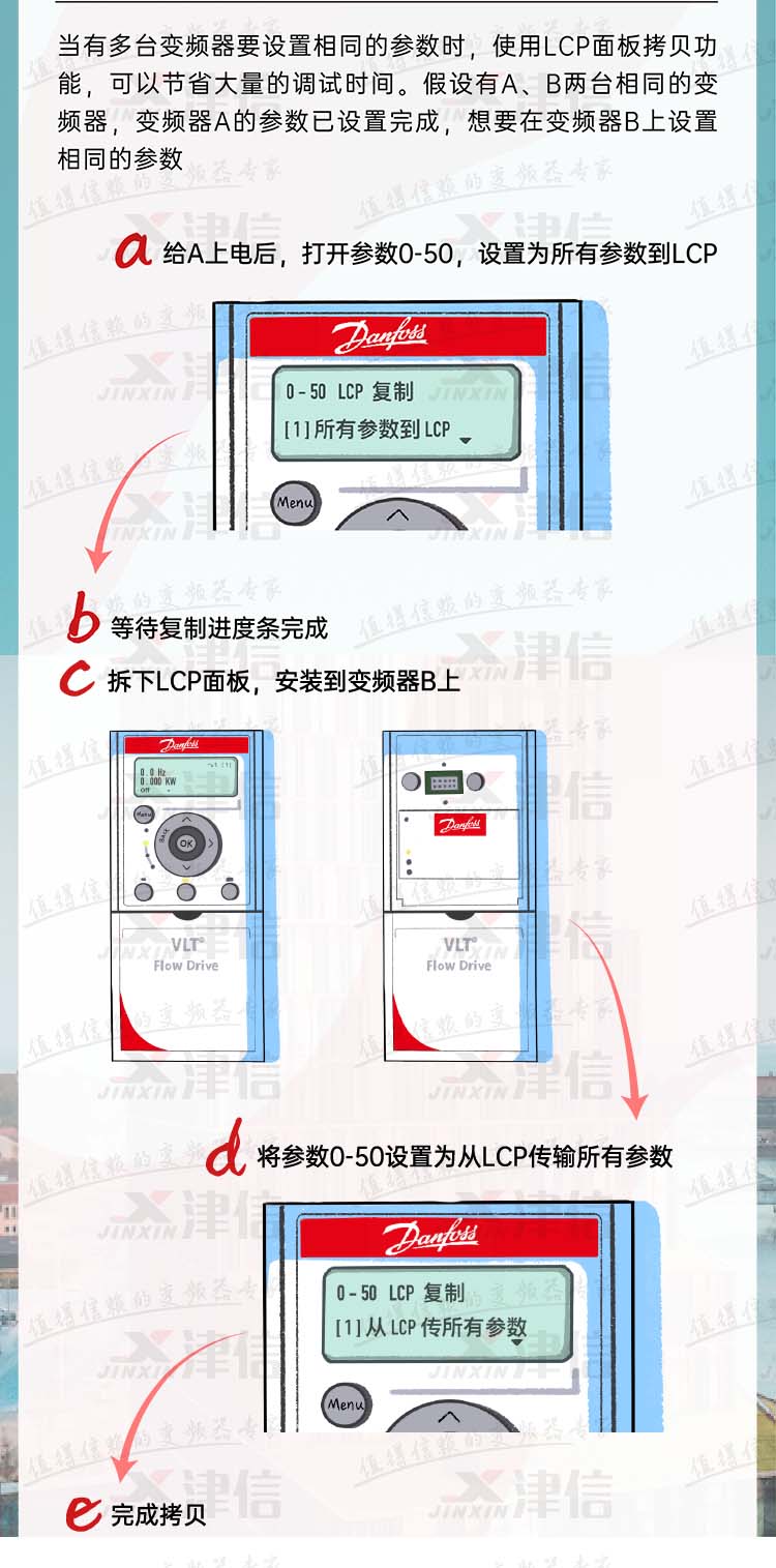 丹佛斯變頻器LCP面板復制拷貝參數方法