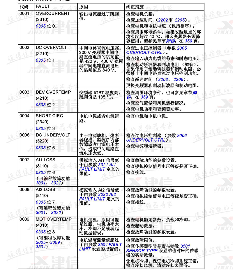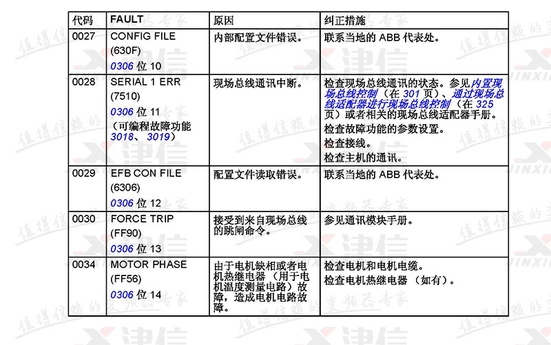 當故障發(fā)生時,可以通過ABB ACS355變頻器面板了解當前故障的故障代碼,并針對相關故障代碼來進行故障排查和維護。